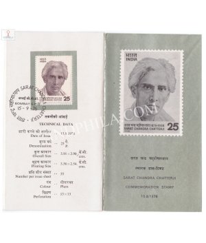 Birth Centenary of Sarat Chandra Chatterji Brochure with First Day Cancellation 1976