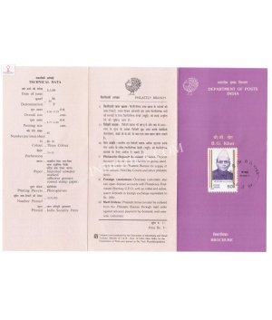 Sri Balasaheb Gangadhar Kher Brochure with First Day Cancellation 1989