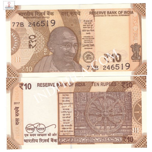 10 Rupees Note Urjit Patel Governor Inset Plain 2017 10_UNC