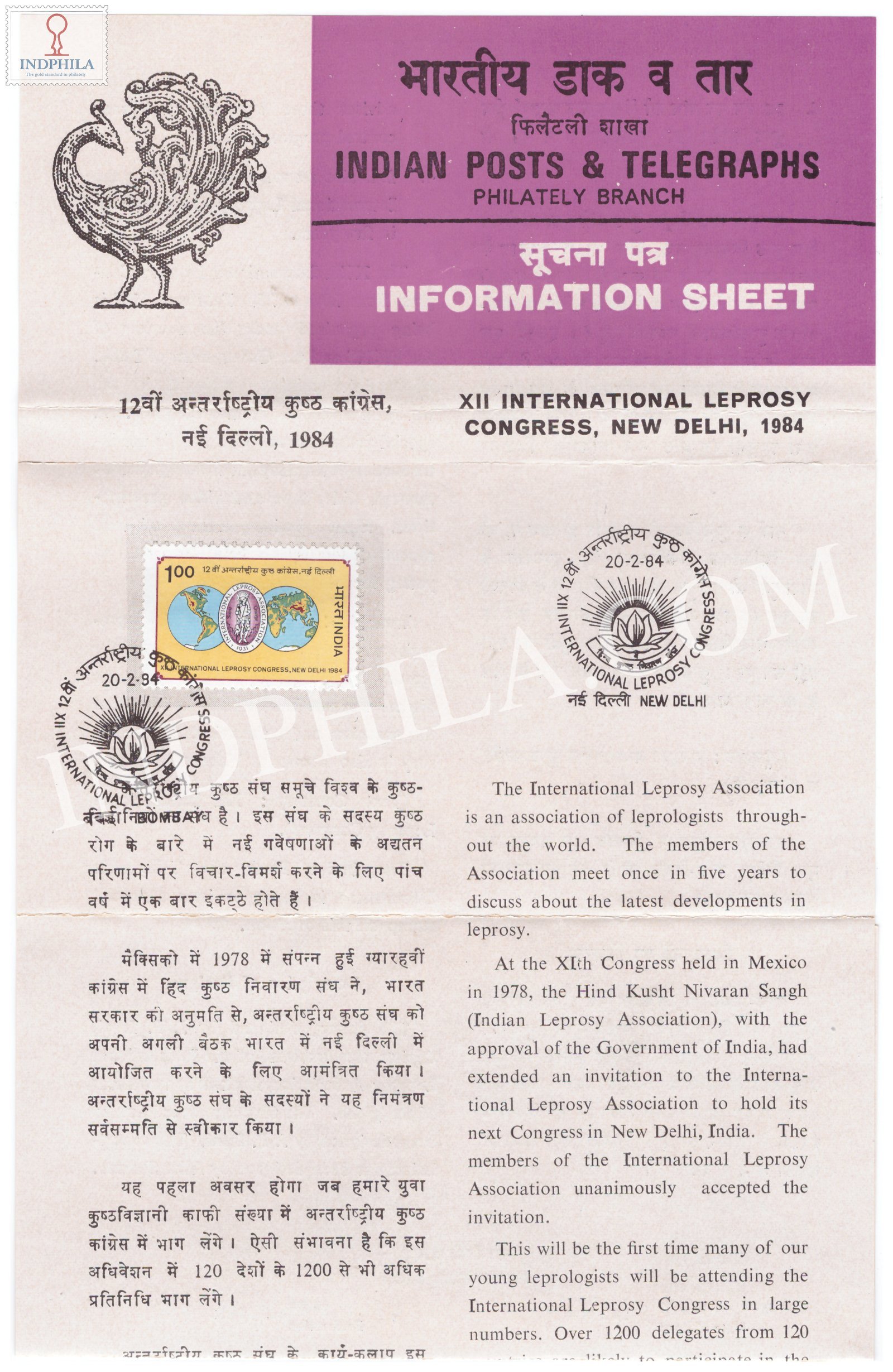 12th International Leprosy Congress New Delhi Brochure with First Day Cancellation 1984