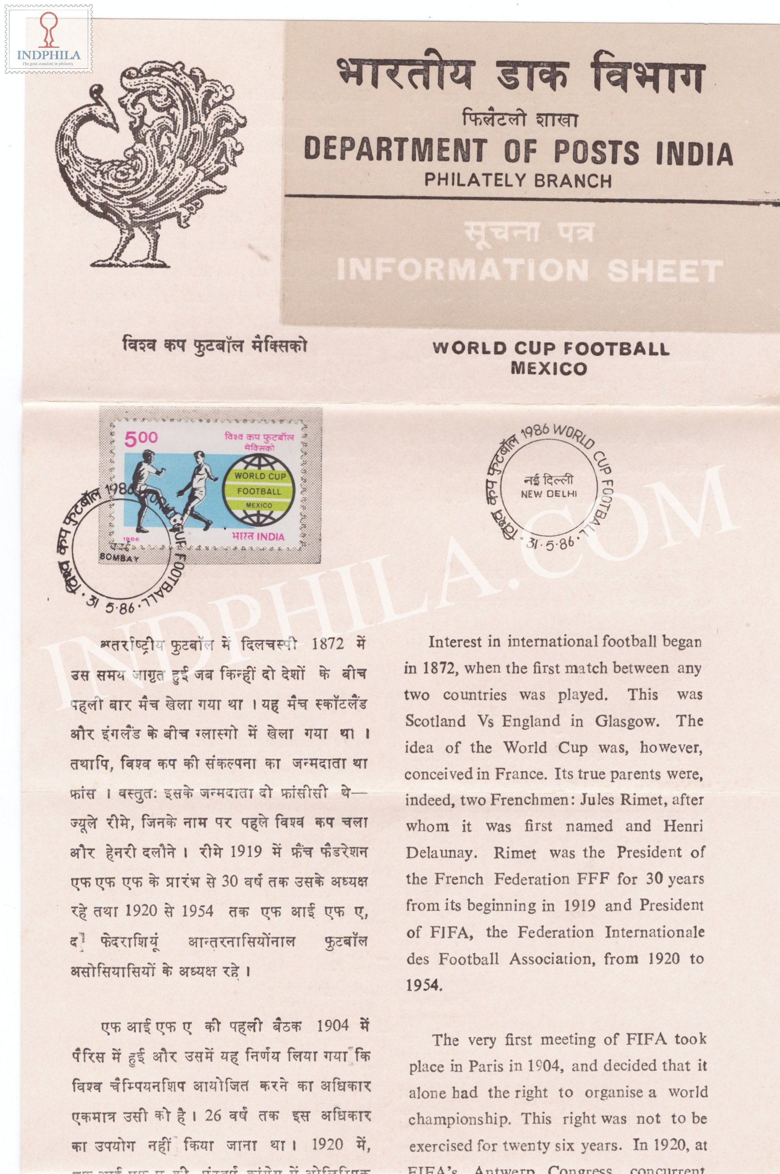 13th World Cup Football Championship Mexico Brochure with First Day Cancellation 1986 Issued By Postal Department