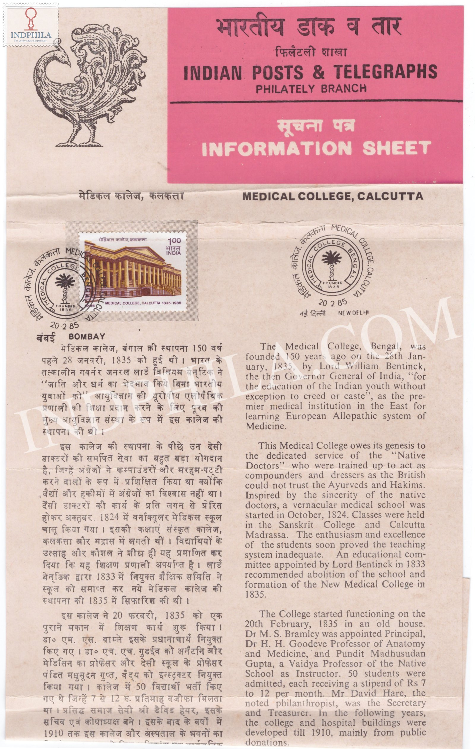 150th Anniversary of Medical College Calcutta Brochure with First Day Cancellation 1985