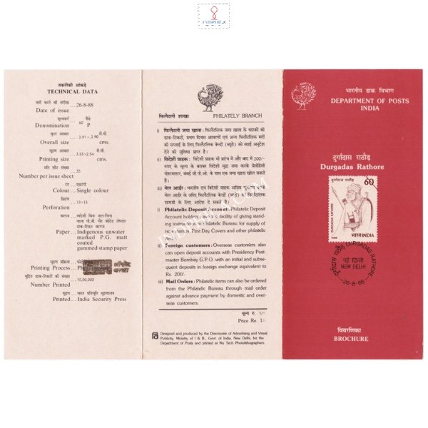 150th Birth Anniversary of Durgadas Rothore Brochureg 1988 Issued By Postal Department