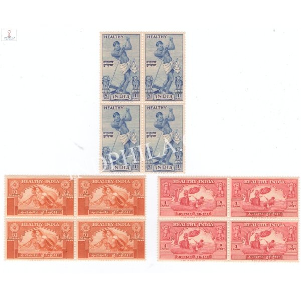 You are here: Home1 / Indian Stamps2 / published year3 / 1947-19564 / 1950 Healthy India Charity Labels Set of 3 Stamps MNH BLOCK OF 4 Stamp...