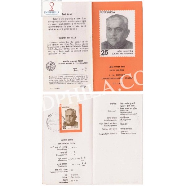 1St Death Anniversary Of Lalit Narayan Mishra Brochure With First Day Cancelation 1976