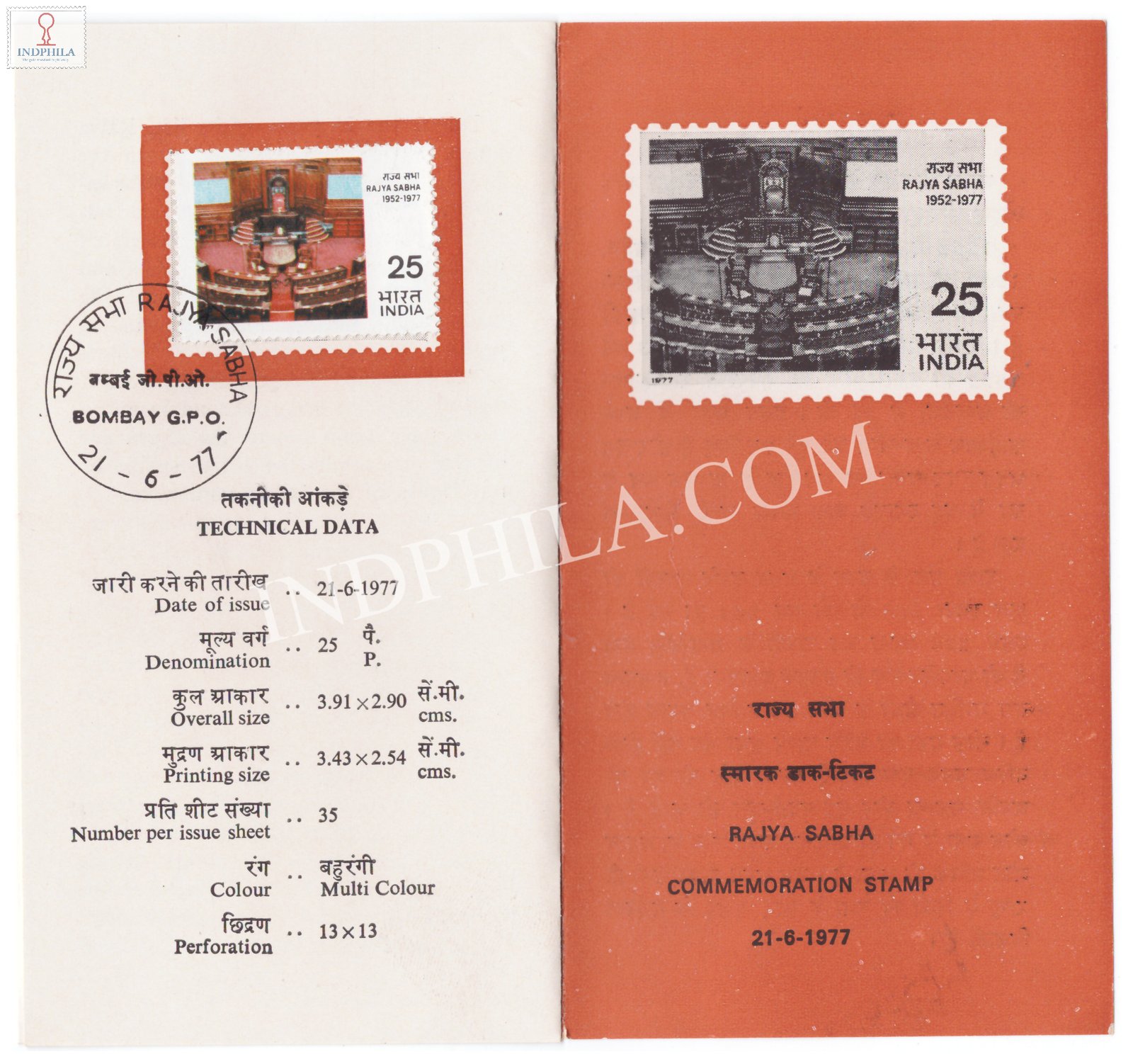 25th Anniversary of Rajya Sabha Brochure with First Day Cancellation 1977