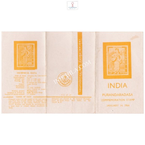 400th Birth Anniversary of Purandaradasa Brochure 1964 Issued By Postal Department
