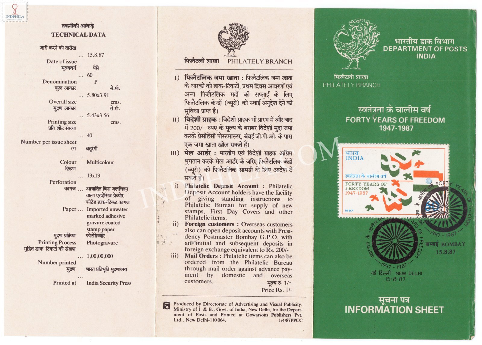 40th Anniv of Independence Brochure with First Day Cancellation 1987 Issued By Postal Department