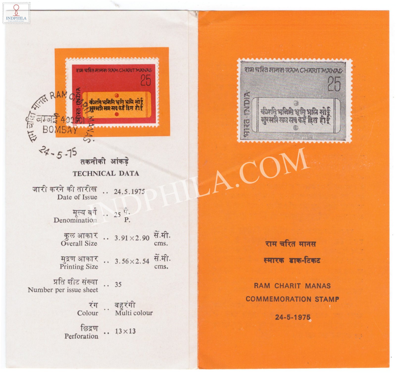 4th Centenary of Ramcharitmanas Brochure with First Day Cancellation 1975 Issued By Postal Department