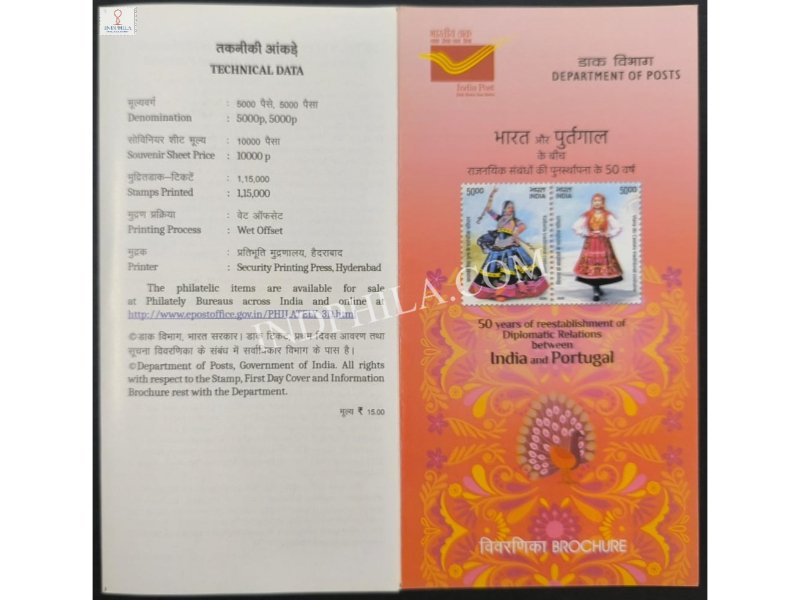 50 Years of Reestablishment of Diplomatic Relations Beetween India and Portugal Brochure 2025 Issued By Postal Department