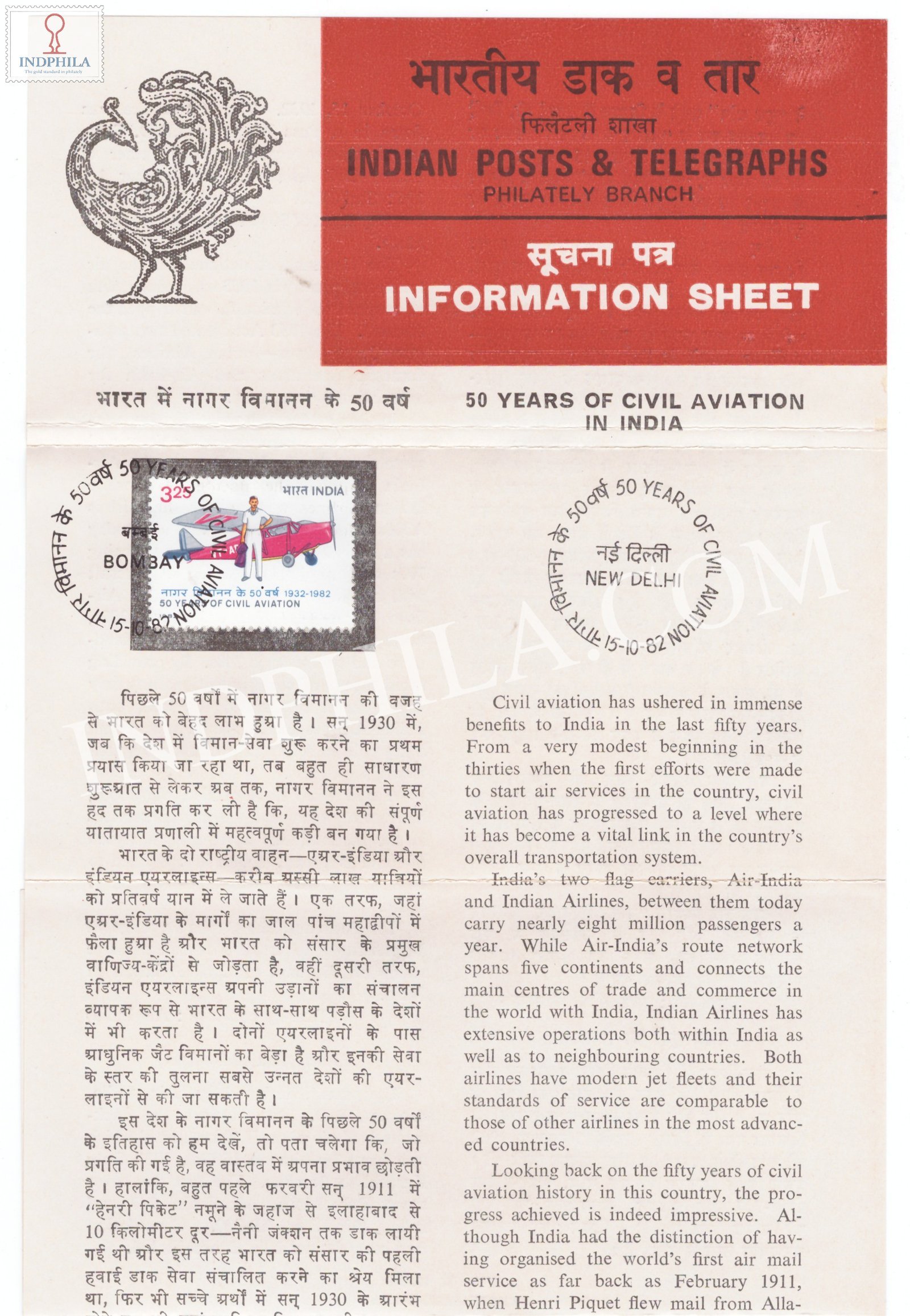 50th Anniversary of Civil Avition in India Brochure with First Day Cancellation 1982 Issued By Postal Department