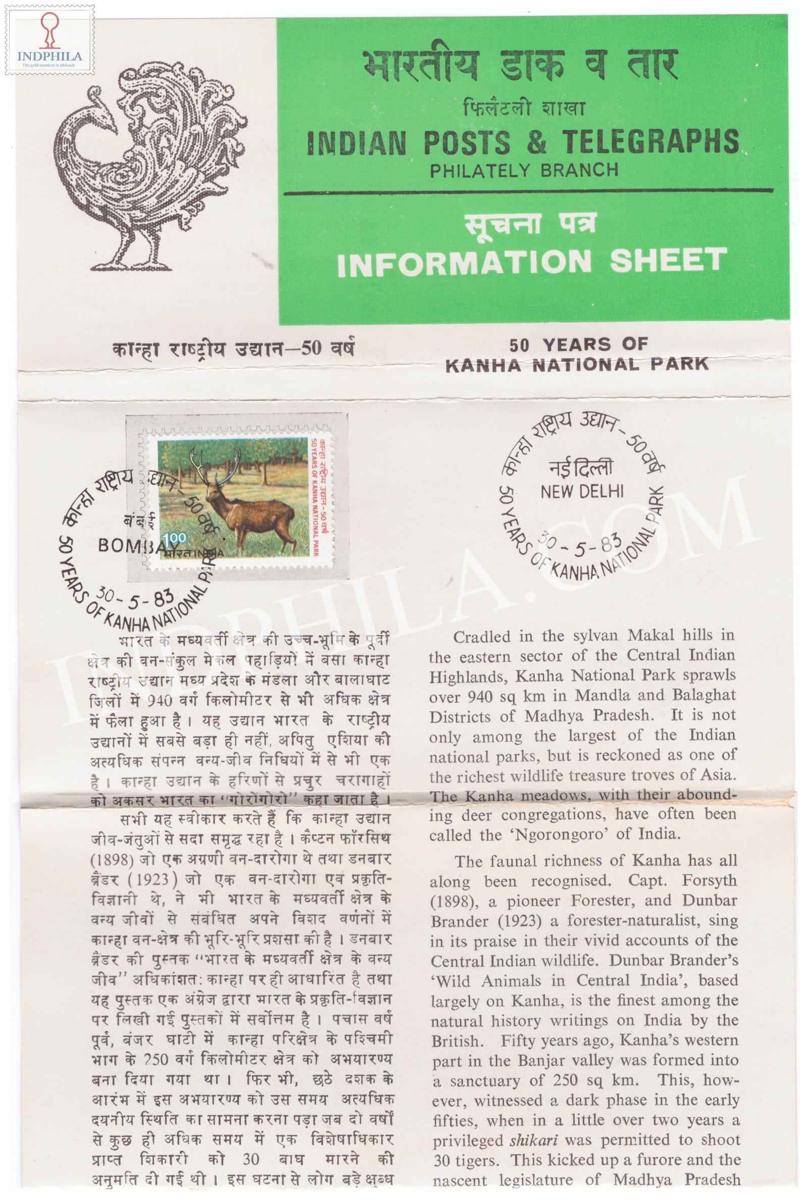 50th Anniversary of Kanha National Park Brochure with First Day Cancellation 1983 Issued By Postal Department