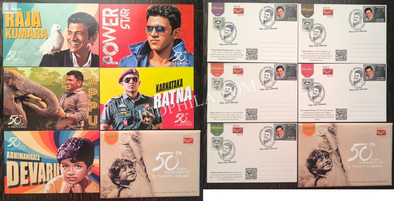 50th Birth Anniversary of Dr Puneeth Rajkumar Set of 5 Cancelled Picture Postcards Issued By India Post