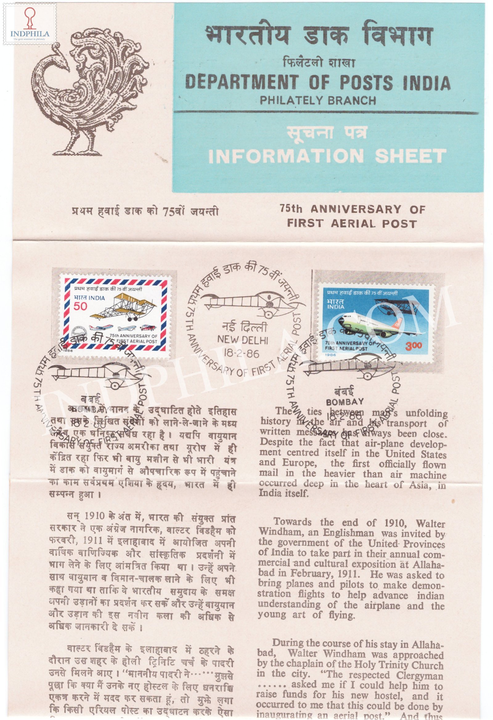 75th Anniversary of First Official Airmail Flight Allahabad Naini Brochure with First Day Cancellation 1986
