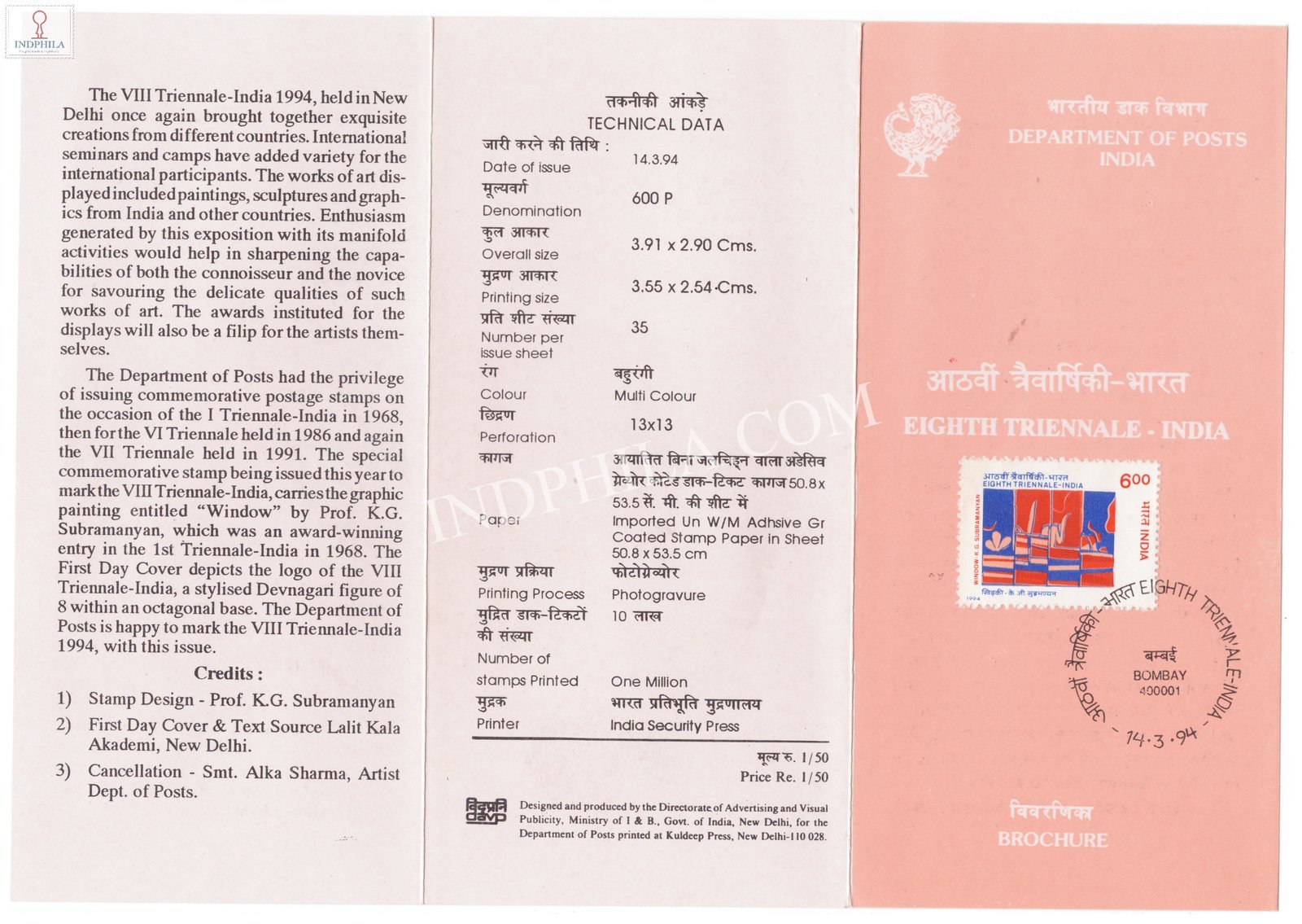 8th Triennale New Delhi Brochure with First Day Cancelation 1994 Issued By Postal Department