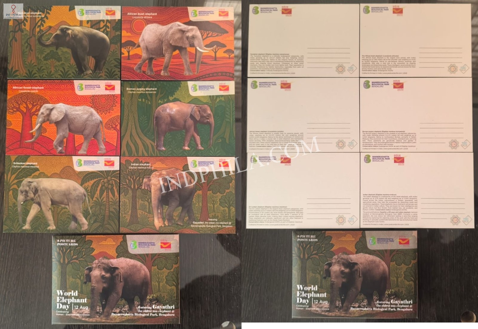 A Set of 6 Picture Postcard – On Occasion of World Elephant Day. Featuring Gayathri – The Oldest Zoo Elephant @ Bannerughatta Biological Park, Bangalore Issued By India Post