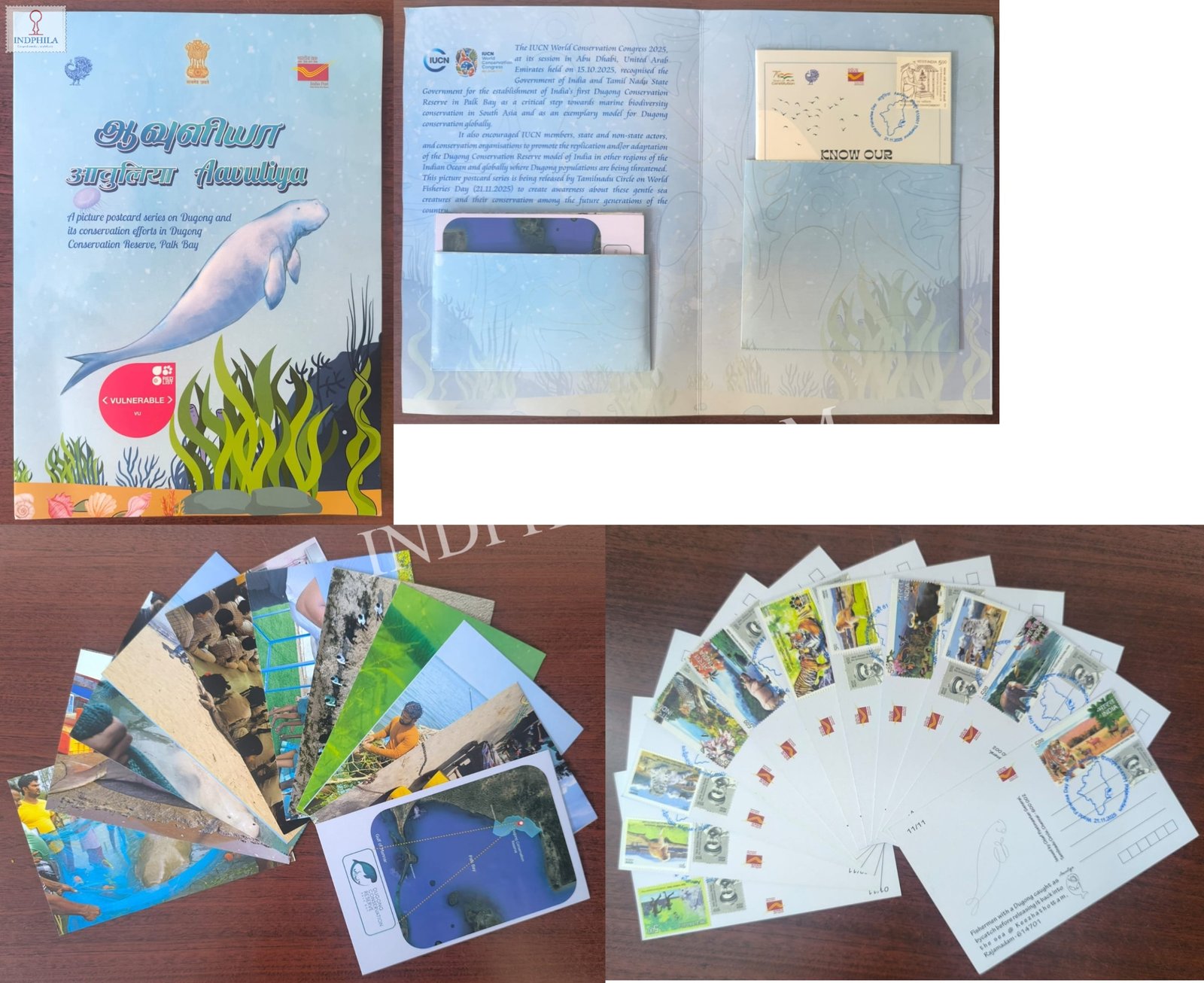 Aavuliya A Dugong Themed Philatelic Set of 11 Cancelled Picture Postcards Issued By India Post
