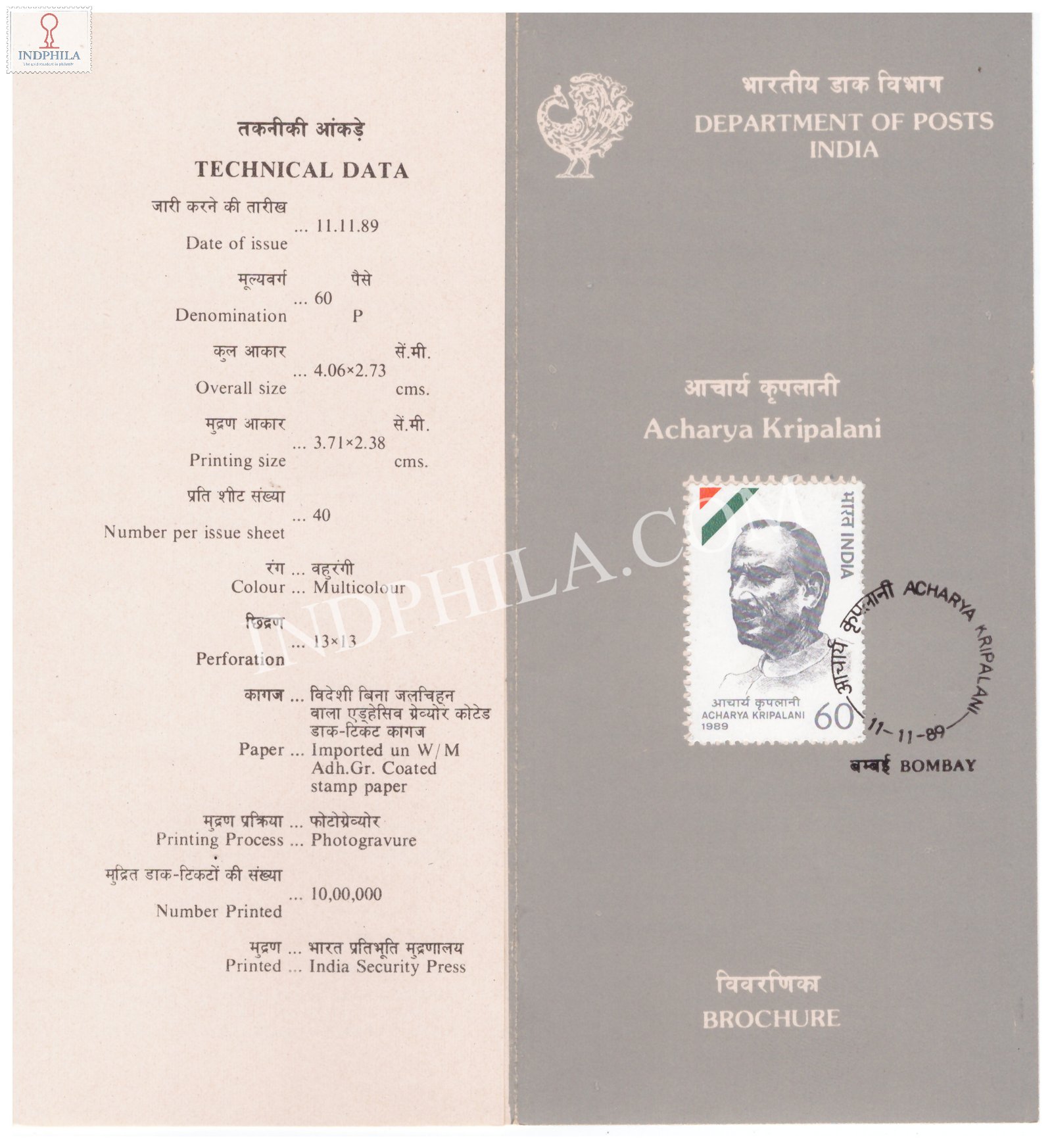 Acharya Kripalani Brochure with First Day Cancellation 1989
