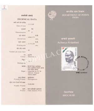 Acharya Kripalani Brochure with First Day Cancellation 1989