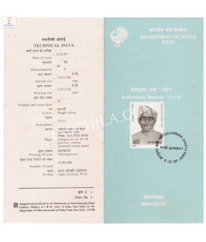 Balkrishna Sharma Navin Brochure with First Day Cancellation 1989