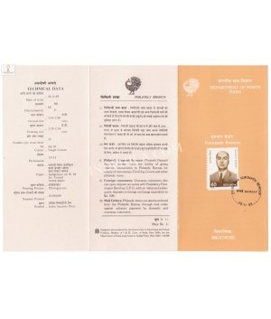 Acharya Narendra Deo Brochure with First Day Cancellation 1989