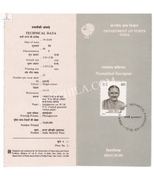 Namakkal Kavignar Brochure with First Day Cancellation 1989