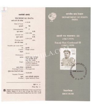 Sayaji Raogaekwad-lll Brochure with First Day Cancellation 1989