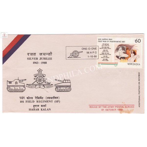 Army Postal Cover of 101 Field Regiment (SP) Harar Kalan was released on 1st October 1988