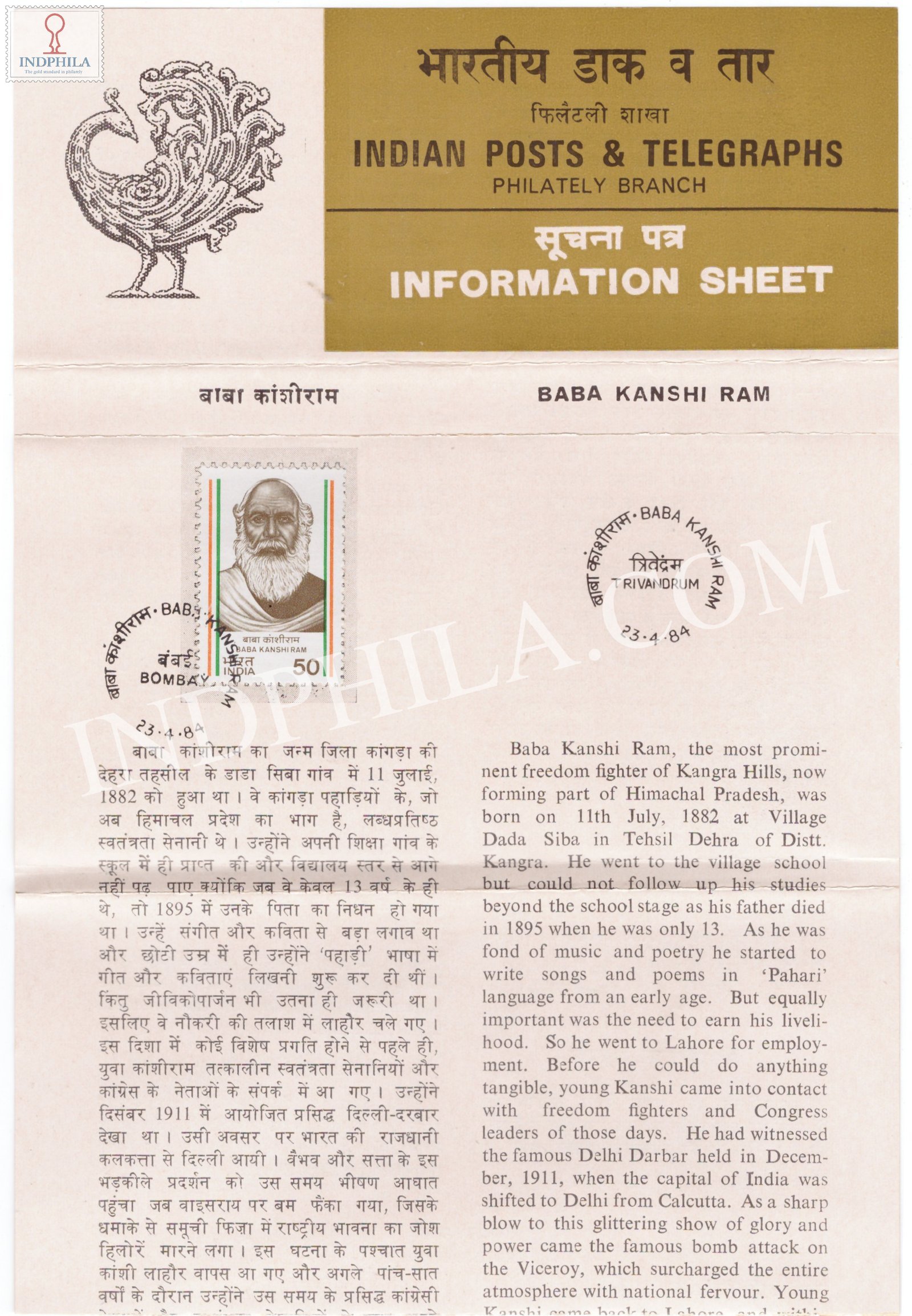 Baba Kanshi Ram Brochure with First Day Cancellation 1984