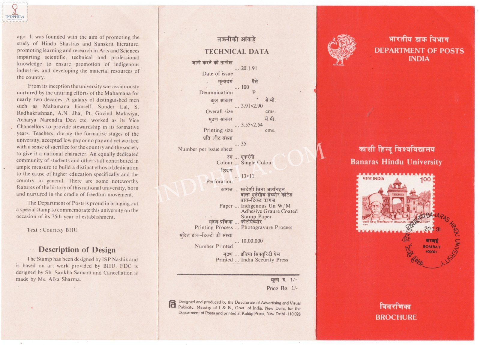 Banaras Hindu University Brochure with First Day Cancelation 1991