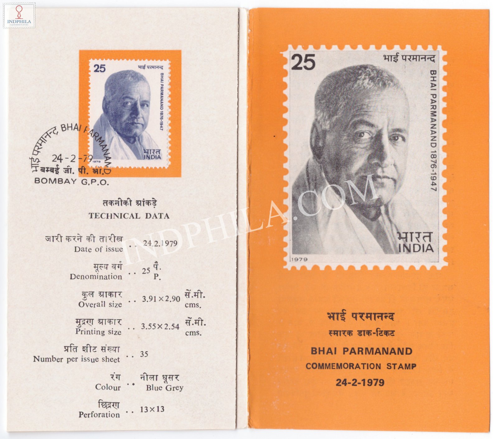 Bhai Parmanand Brochure with First Day Cancellation 1979
