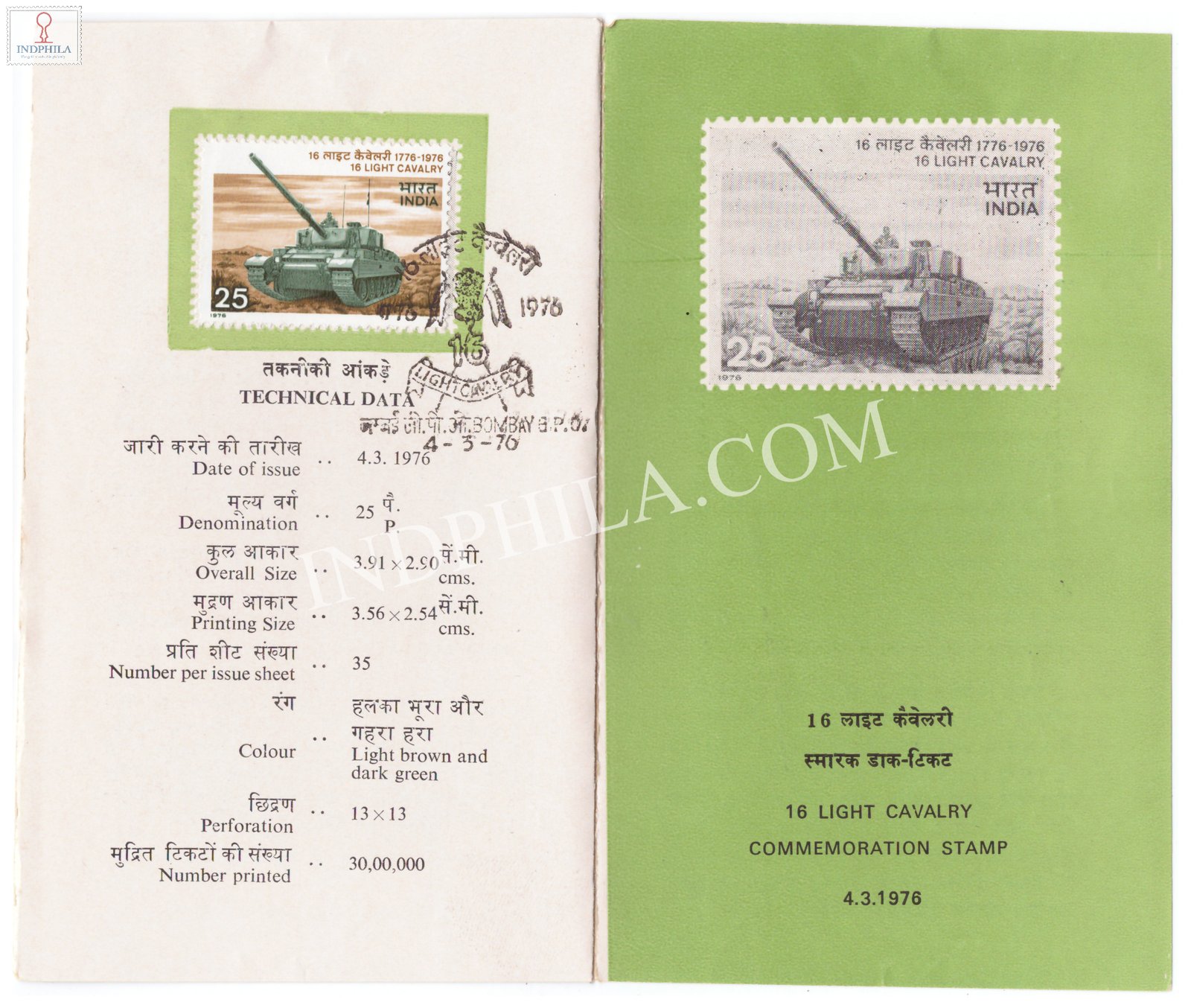 Bicentenary of 16th Light Cavalry Regiment Brochure with First Day Cancellation 1976 Issued By Postal Department