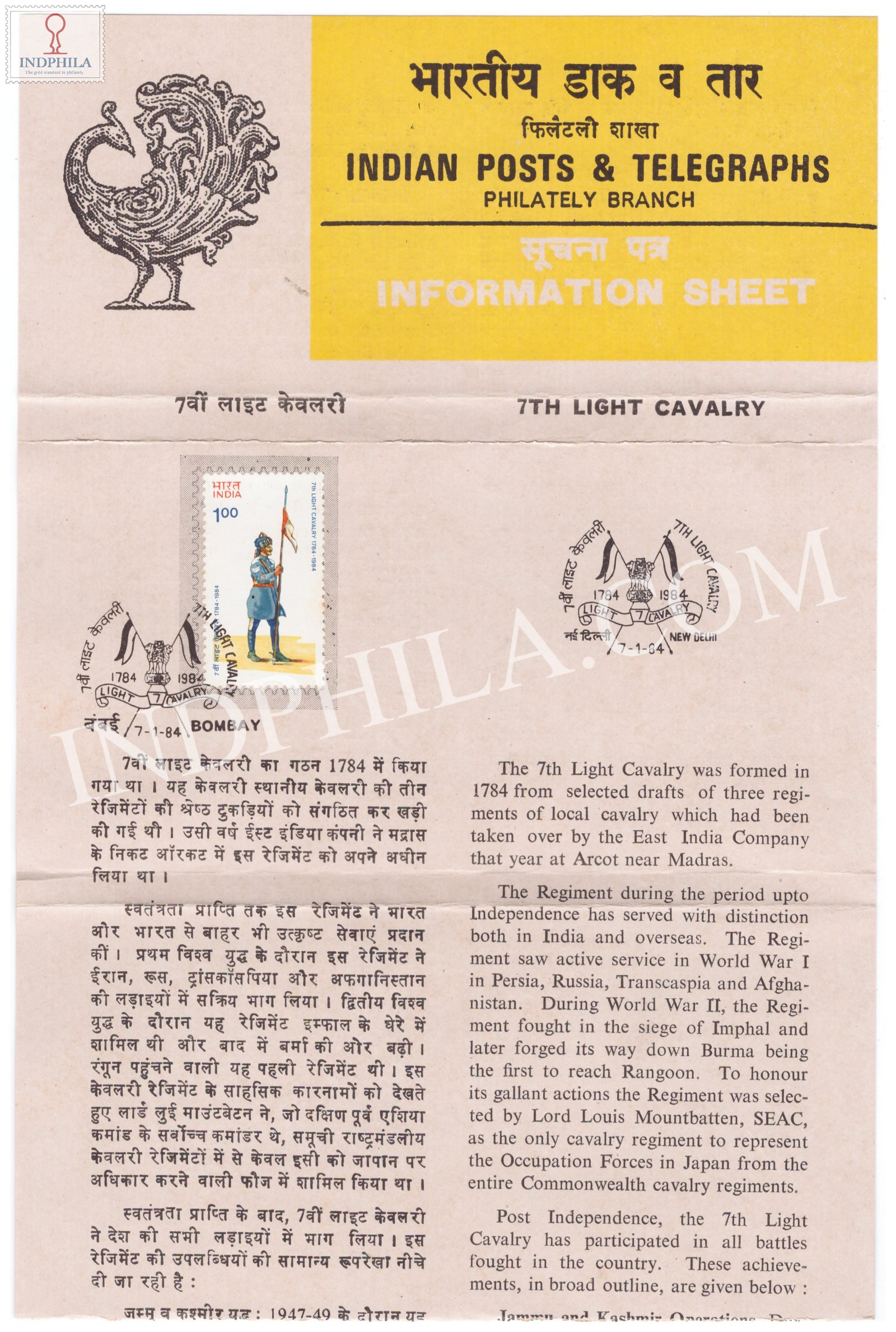 Bicentenary of 7th Light Cavalry Regiment Brochure with First Day Cancellation 1984 Issued By Postal Department
