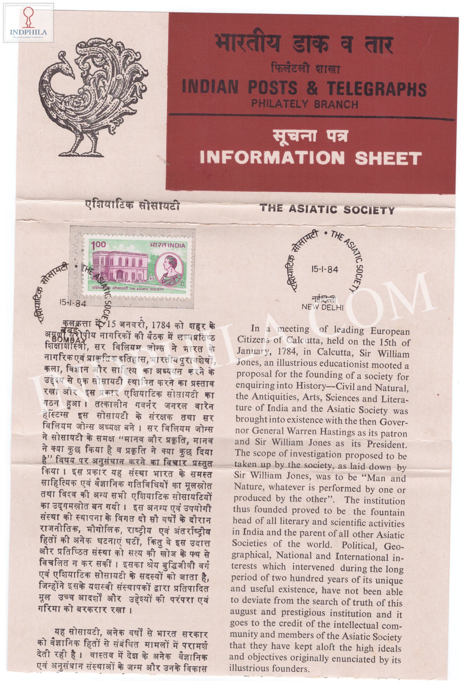 Bicentenary of Asiatic Society Calcutta Brochure with First Day Cancellation 1984