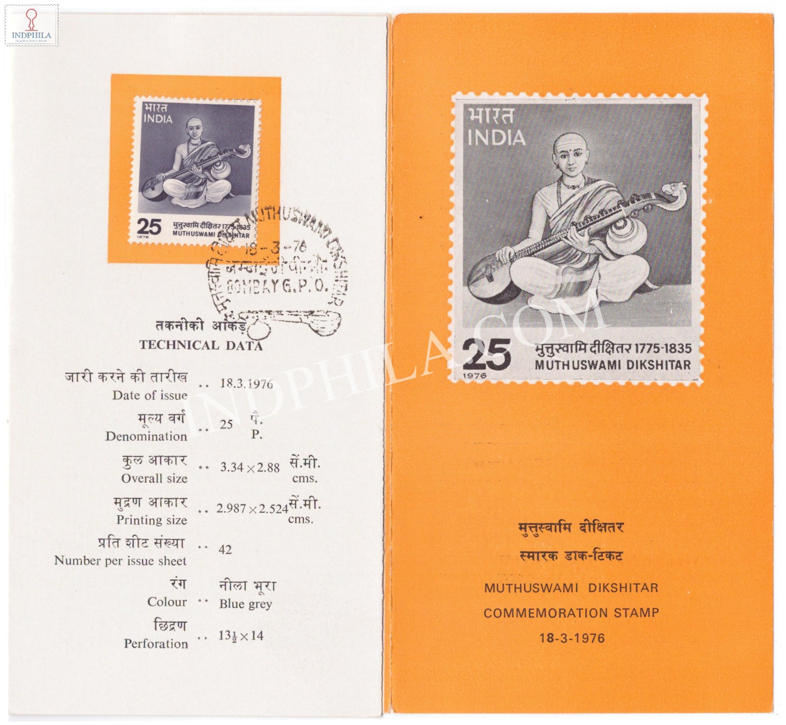 Birth Bicentenary of Muthuswami Dikshitar Brochure with First Day Cancellation 1976