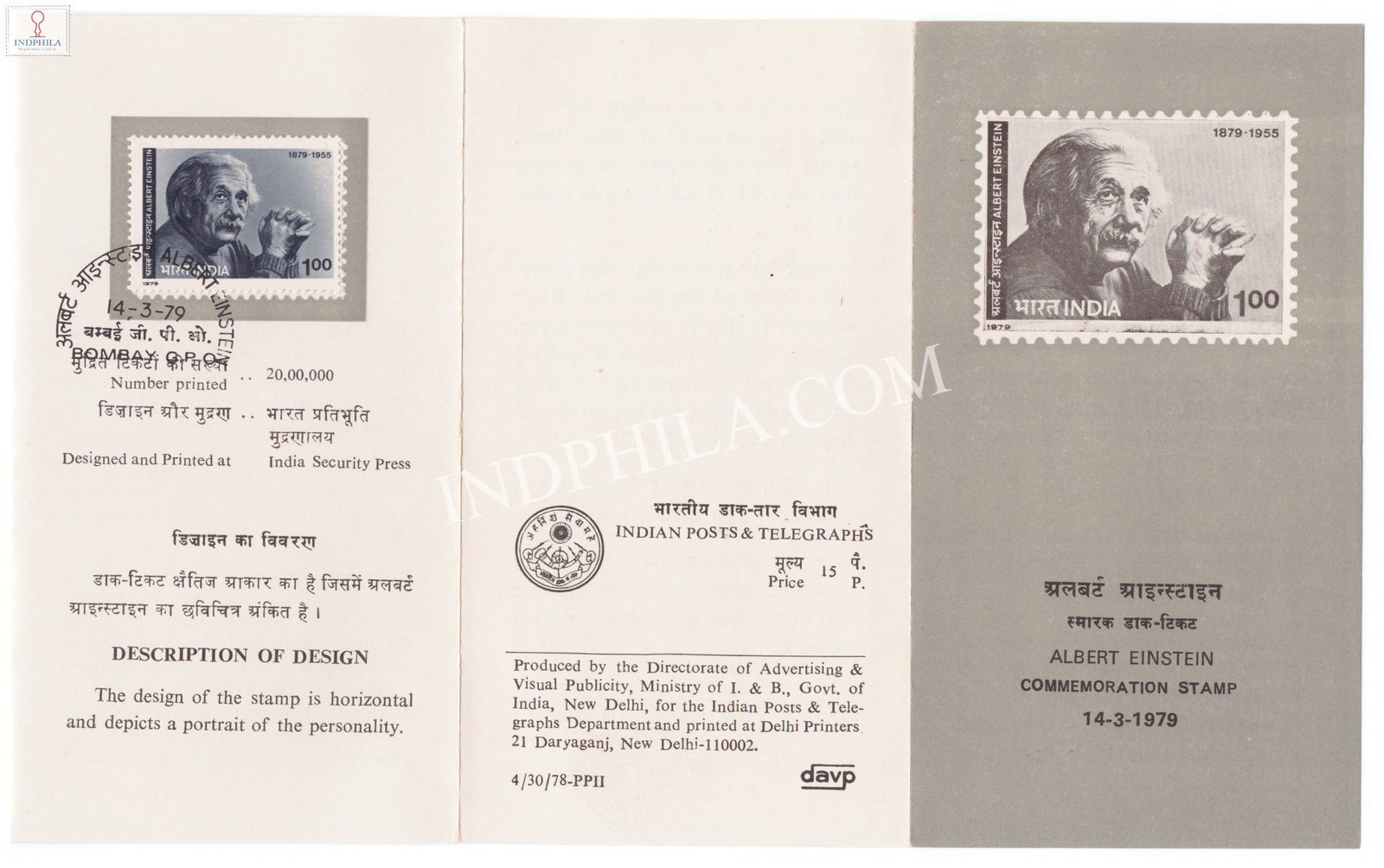 Birth Centenary of Albert Einstein Brochure with First Day Cancellation 1979 Issued By Postal Department