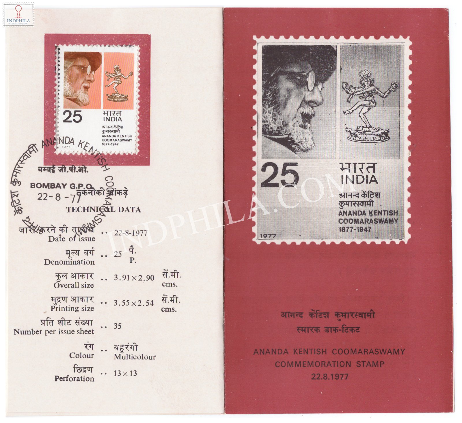 Birth Centenary of Ananda Kentish Coomaraswamy Brochure with First Day Cancellation 1977