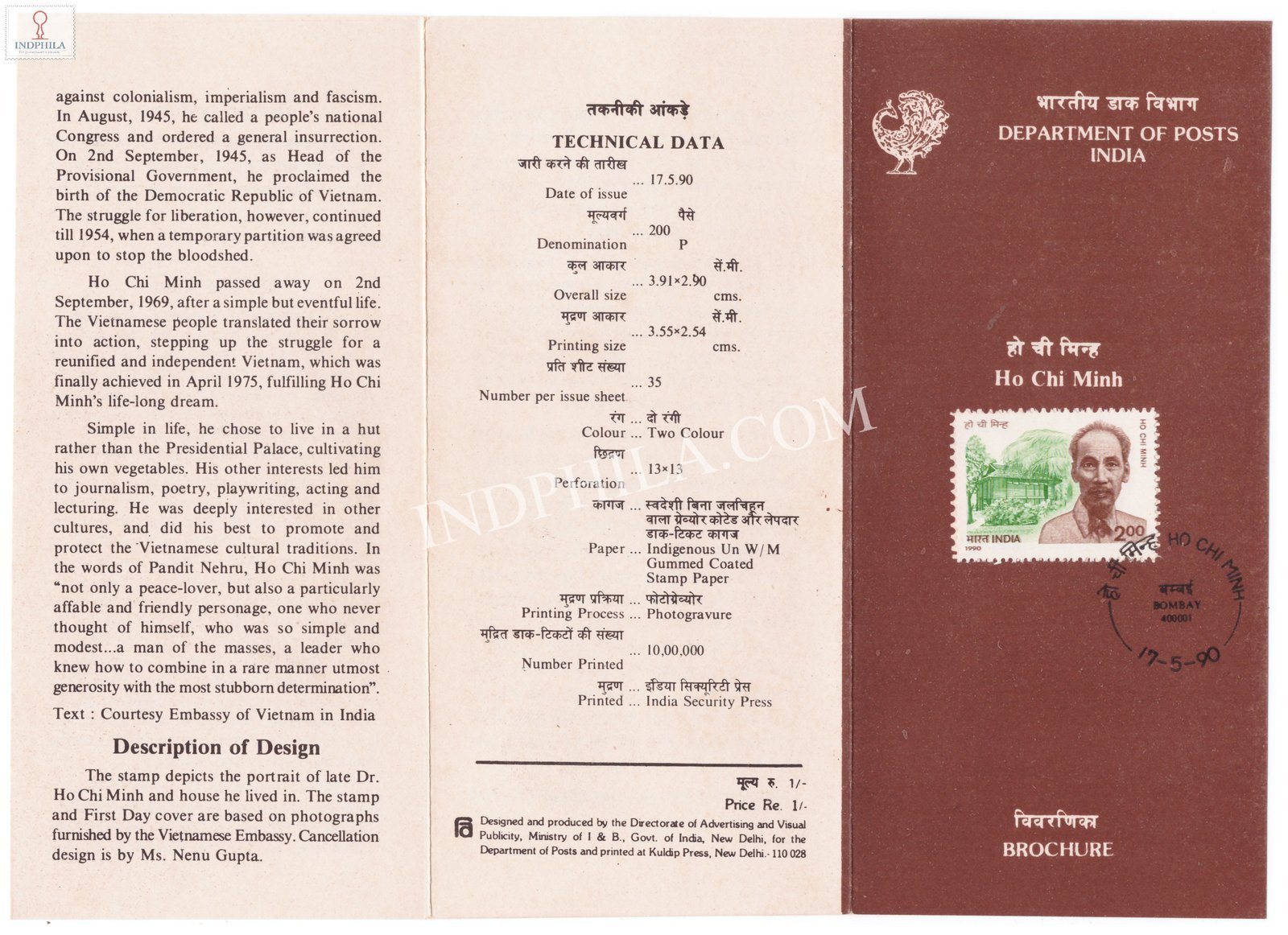 Birth Centenary of Ho Chi Brochure with First Day Cancelation 1990