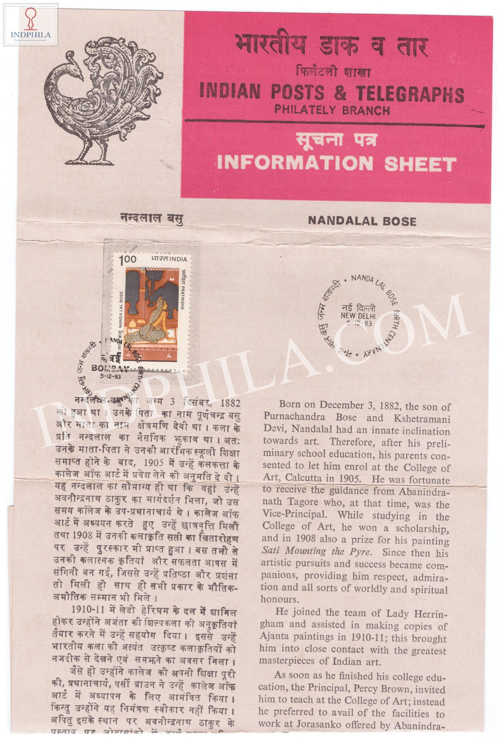 Birth Centenary of Nandalal Bose Brochure with First Day Cancellation 1983 Issued By Postal Department