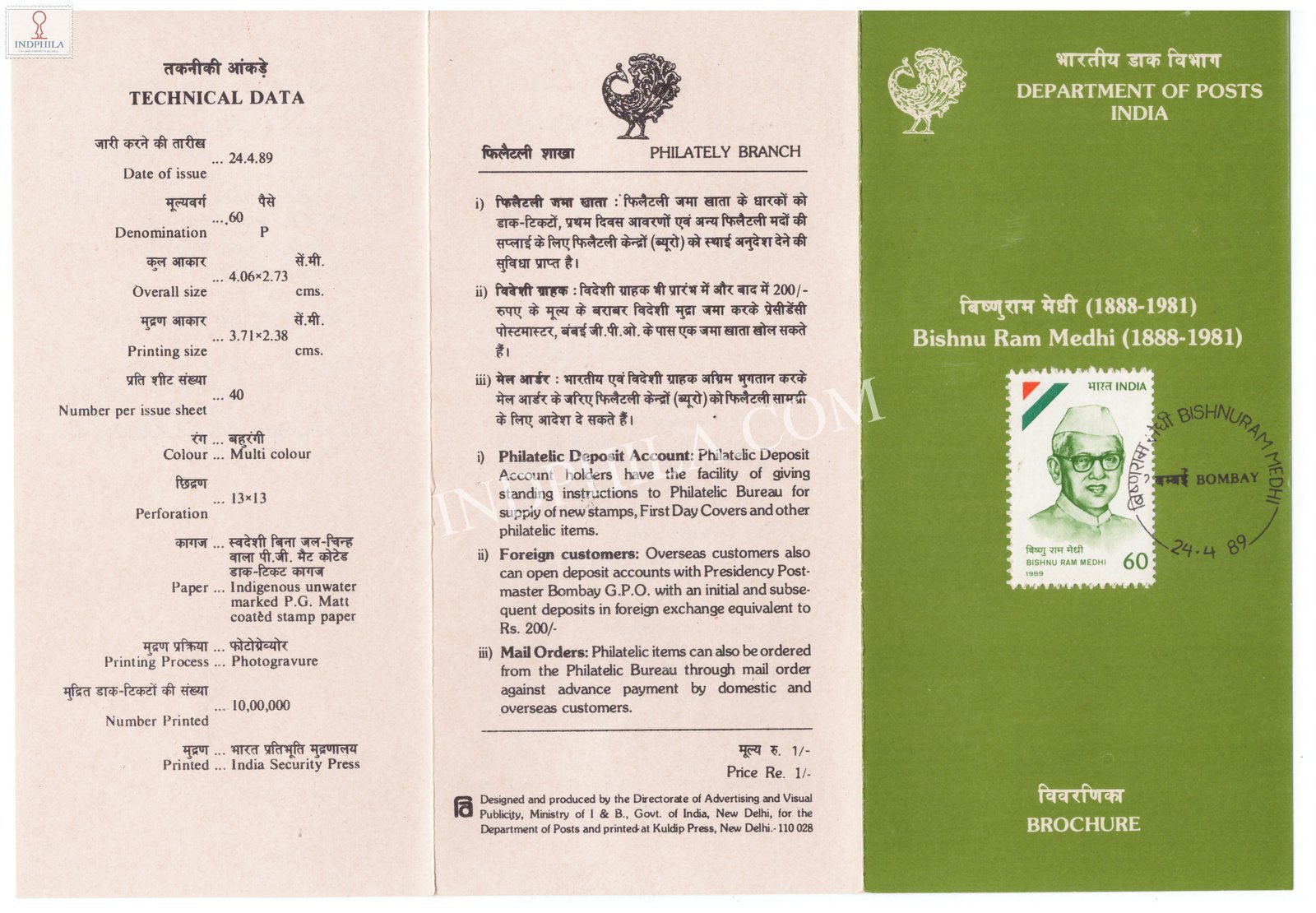 Bishnu Ram Medhi Brochure with First Day Cancellation 1989