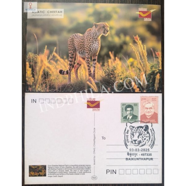 Cancelled Picture Post Card of Asiatic Cheetah 2025 Issued By India Post