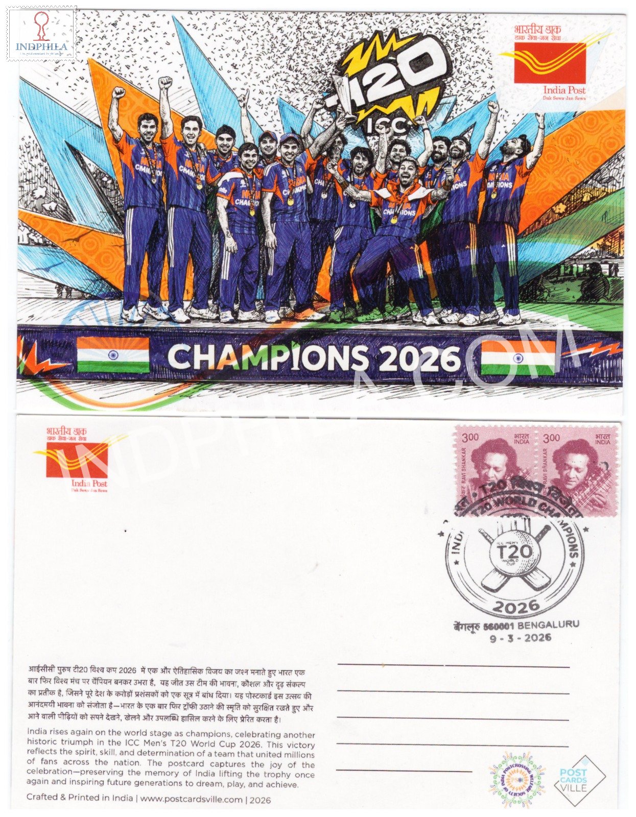 Cancelled Picture Post card of ICC Men’s T20 World Cup Champions 2026 Issued By India Post