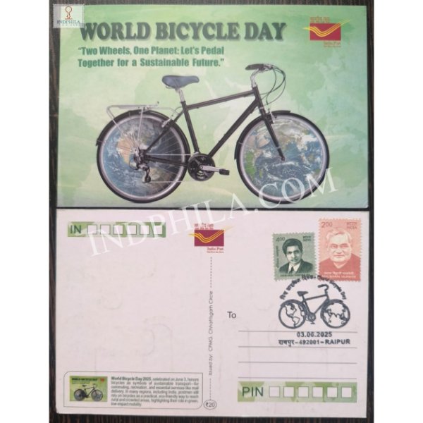 Cancelled Picture Post Card of World Bicycle Day 2025 Issued By India Post