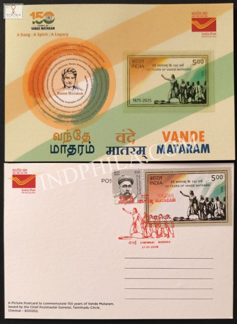 Cancelled Picture Postcard of 150 Years of Vande Mataram issued by Tamilnadu Postal Circle 2026