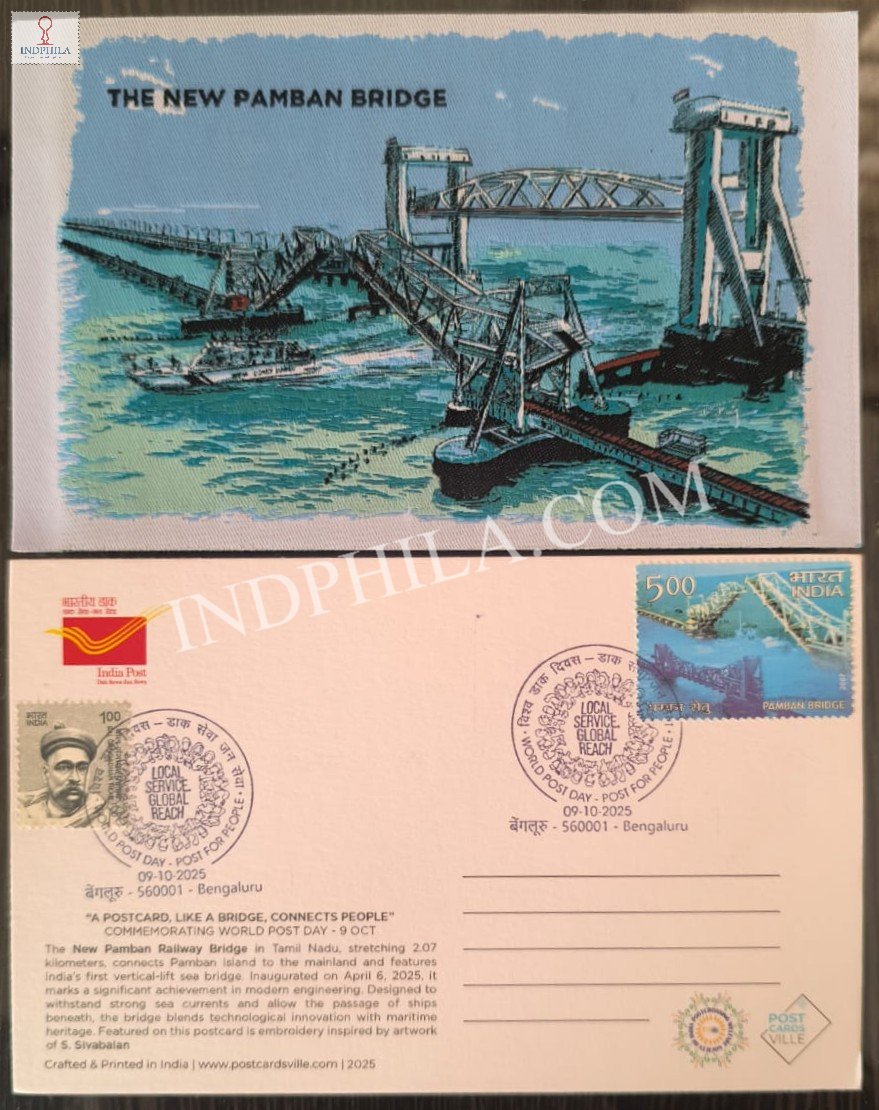 Cancelled Picture Postcard of The New Pamban Bridge With Micro Embroidery Format Issued By India Post