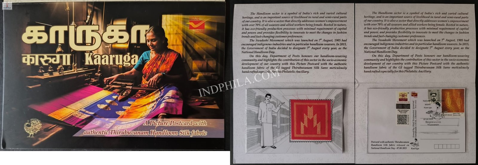 Cancelled Picture Postcard with Authentic Thirubuvanam Handloom Silk Fabric Kaaruga (G I Tag Product With Cloth Affixed) Issued By India Post
