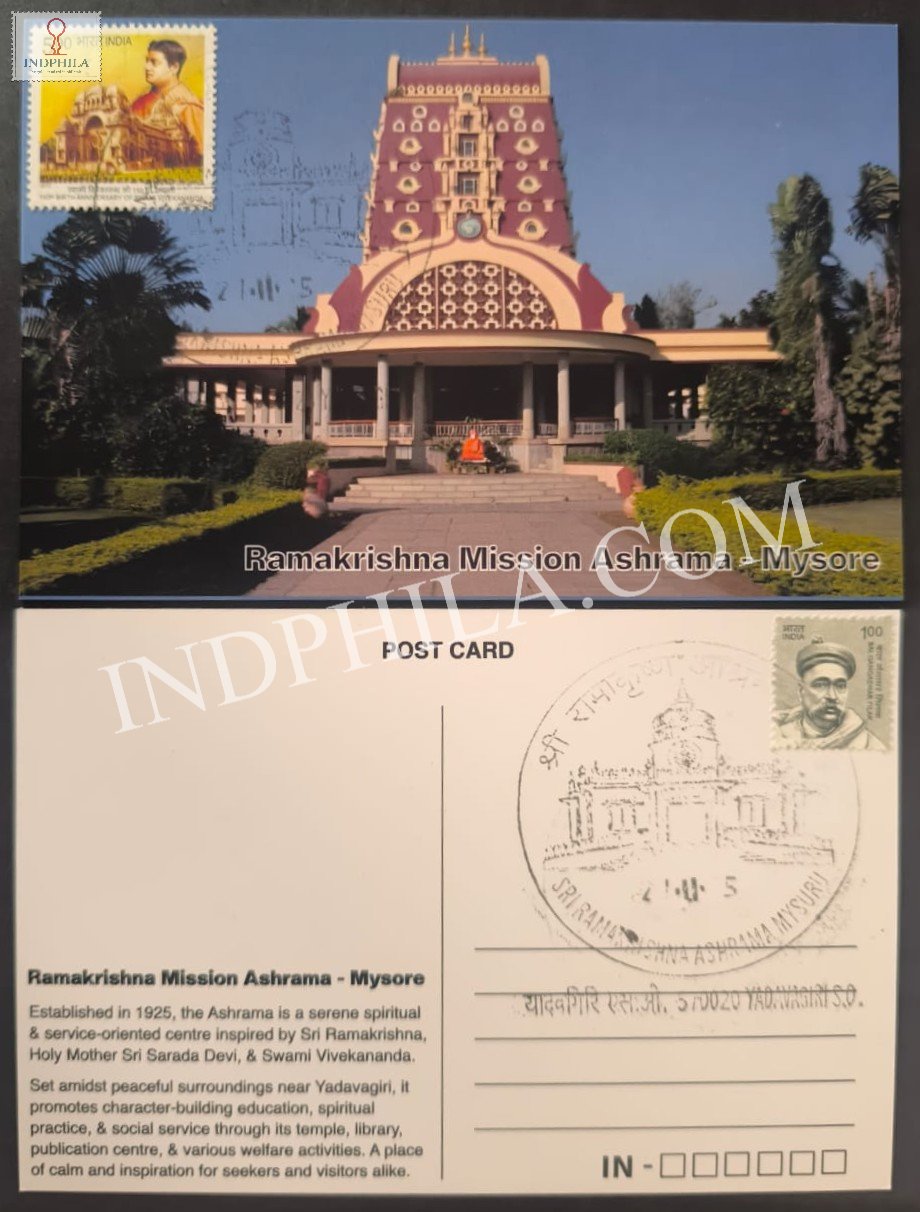 Cancelled Picture Postcards of Ramakrishna Mission Ashrama Mysore With Inaugural Day Permanent Pictorial Cancellation 2025 7 Issued By India Post