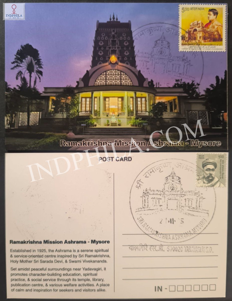 Cancelled Picture Postcards of Ramakrishna Mission Ashrama Mysore With Inaugural Day Permanent Pictorial Cancellation 2025 8 Issued By India Post