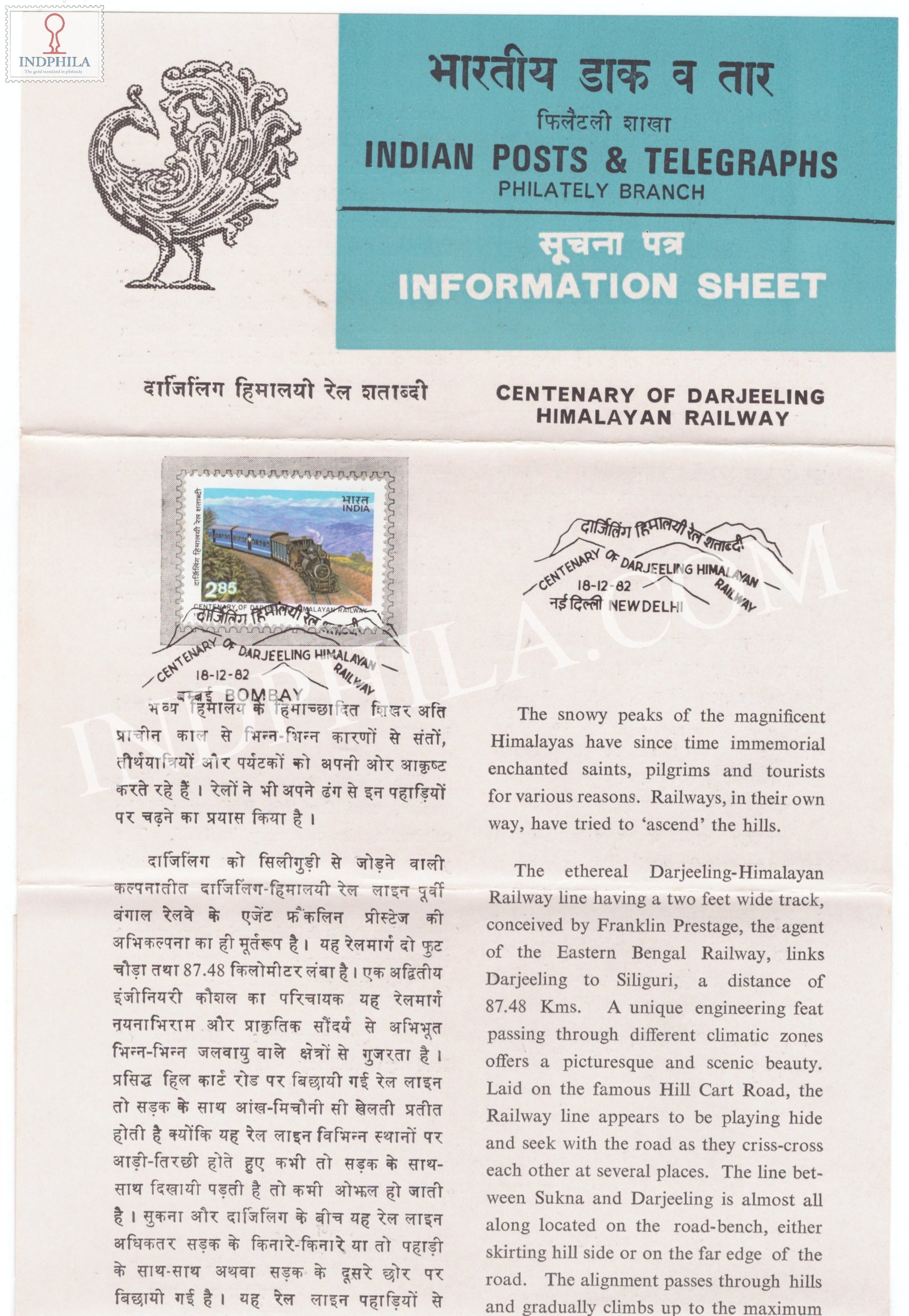 Centenary of Darjeeling Himalayan Railway Brochure with First Day Cancellation 1982