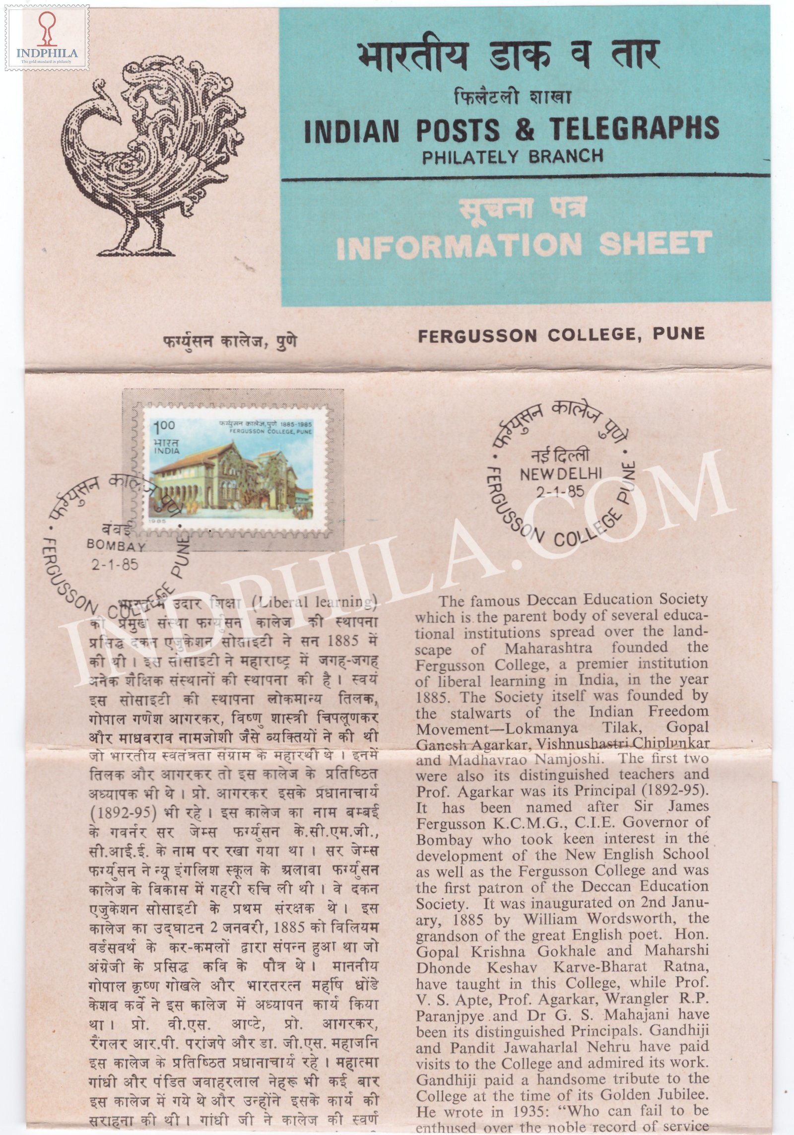 Centenary of Ferguss College Pune Brochure with First Day Cancellation 1985 Issued By Postal Department